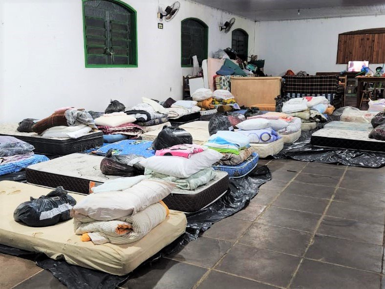 Também no Bairro Itararé, a Igreja Santa Catarina abriga 47 pessoas e, a partir deste sábado (11), conta com mais 30 pontos de acomodação no salão da paróquia. Ao todo, são 200 vagas disponibilizadas pelo Município para acolhimento de pessoas desabrigadas, com esforços para que esse número chegue a 500.