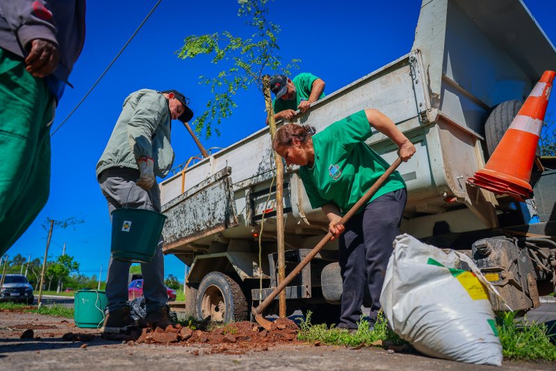 Prefeitura inicia o projeto Rua Mais Arborizada com plantio de árvores na Perimetral Dom Ivo Lorscheiter